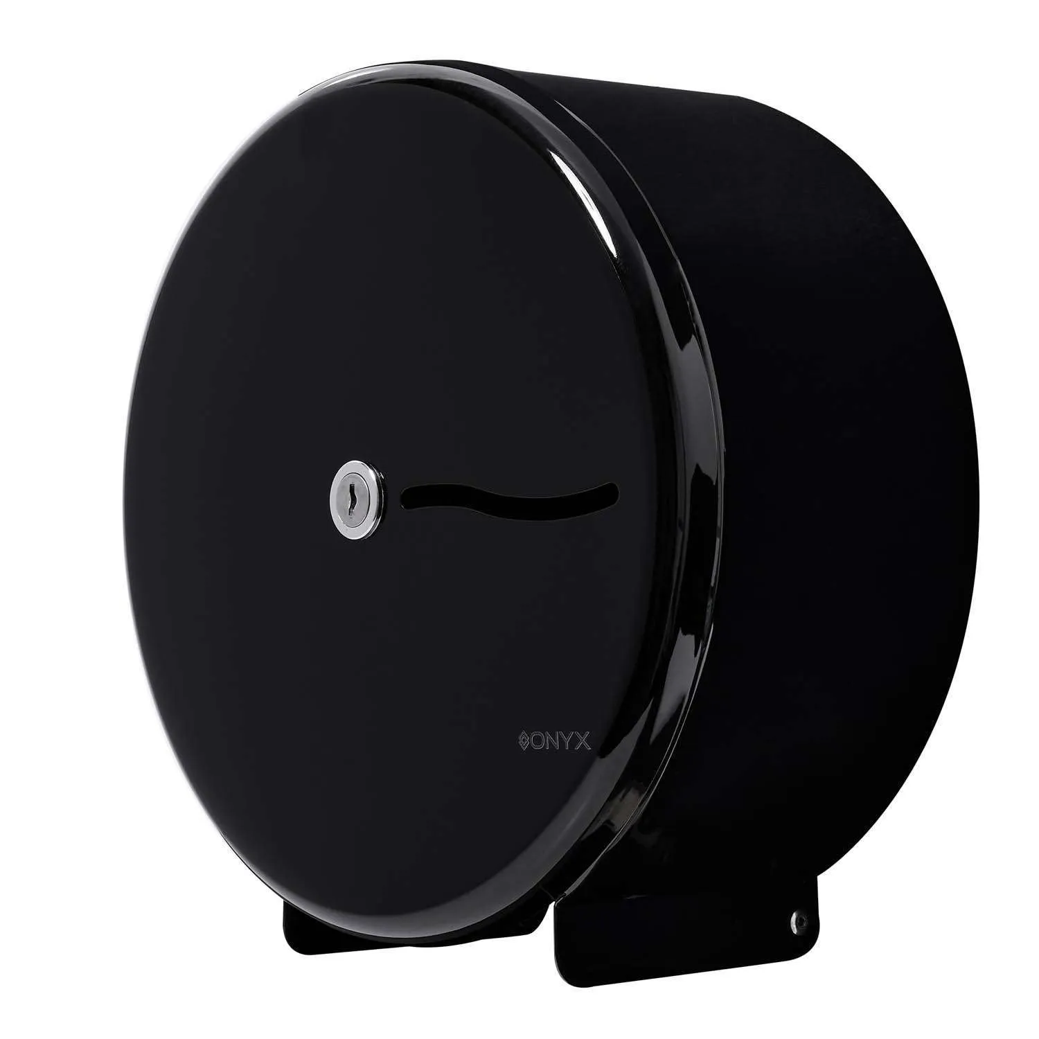 Mini Jumbo toilet tissue dispenser that is key lockable and hinged for easy access to replace the existing roll. It will accommodate a standard mini jumbo roll and has a level indicator to ensure paper is always convenient to monitor. The unit features a full back plate and has a functional locking system using a T-Bar lock and 118 key. This lock and key operation accomplishes smooth engagement between the cover and back plate fashioning a user friendly product. Made in a black metal powder coat finish. Designed and Built in the UK.