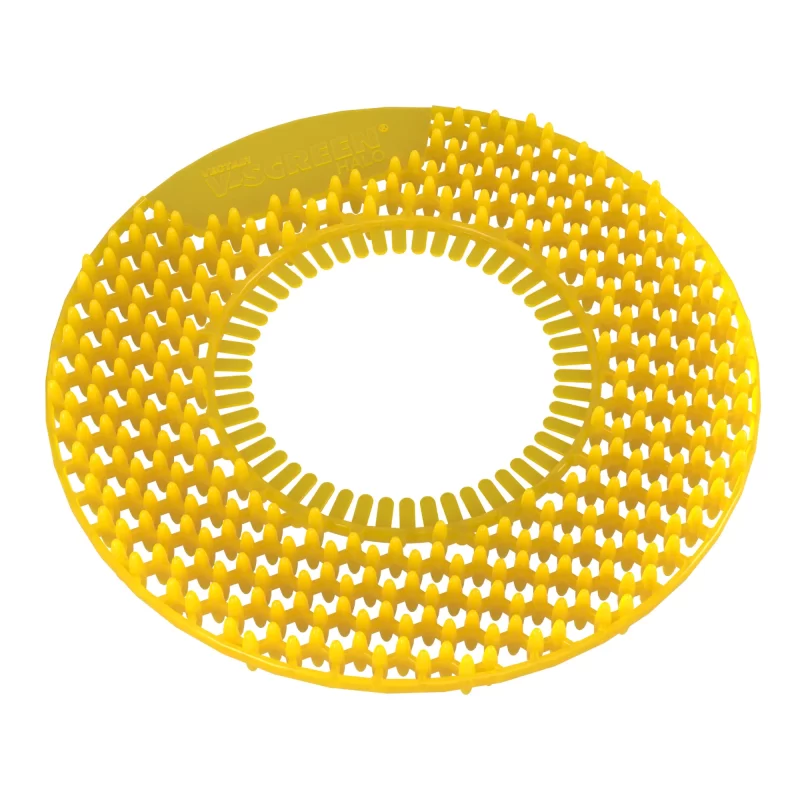 Elevate your washroom experience to new heights with the V-Screen® Halo Urinal Screen, a simple and efficient 30-day solution designed for optimal cleanliness and hygiene. This product effortlessly fits over waterless cartridges, ensuring easy installation and a continuous flow for optimal performance.